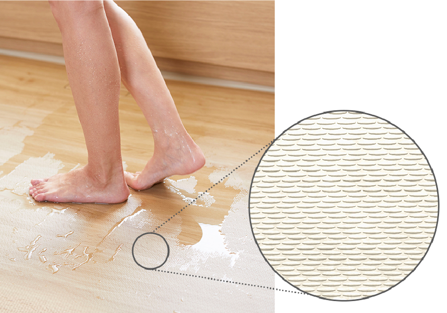 腳型 獨特的Foot Fit圖案,增加腳底與地面的接觸面積,利用水的表面張力將腳底拉向地面,增強防滑效果。 |
