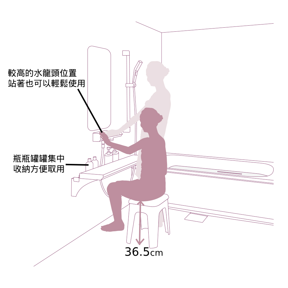全面支持您在浴室中的活動,無論是誰都可以安心輕鬆地使用。