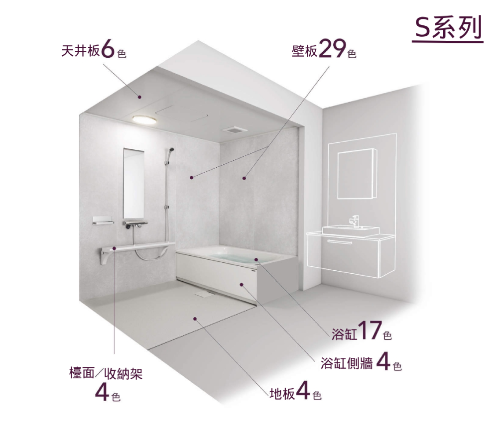 | 我們可以協調牆壁、天花板、浴缸和地板,以配合您理想的室內風格。 | 透過從廣泛的可用物品中進行選擇,任何人都可以打造自己喜歡的浴室。 |