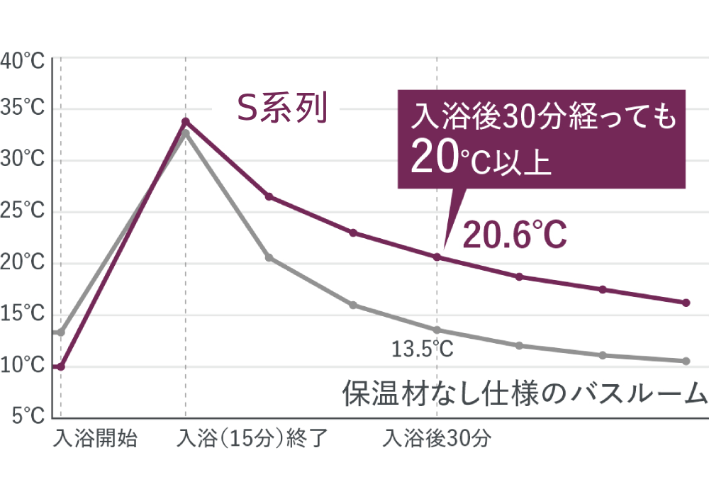 壁板 新開發的牆板,與傳統產品相比,成功縮小了 11 毫米,同時保持了浴室內的高隔熱性能。 |