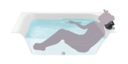 | 可旋轉的頭枕可在兩種位置支撐舒適的沐浴姿勢。 放下頭枕時,頭枕可支撐頭部;豎起頭枕時,頭枕可變化至適當的高度,讓您在露出肩膀的情況下也能舒適地沐浴。 |