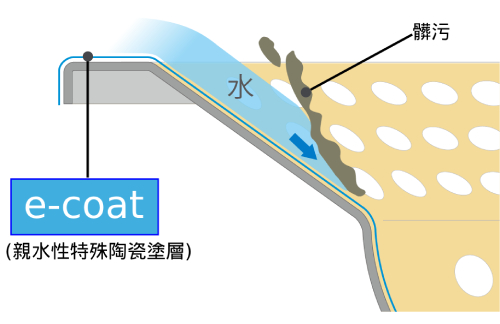 親水性特殊陶瓷塗層能讓油污浮起跟水一併沖走,頭髮等髒汙也可以用單手清理。