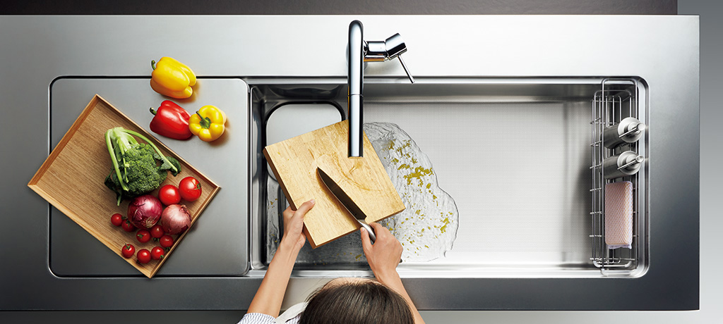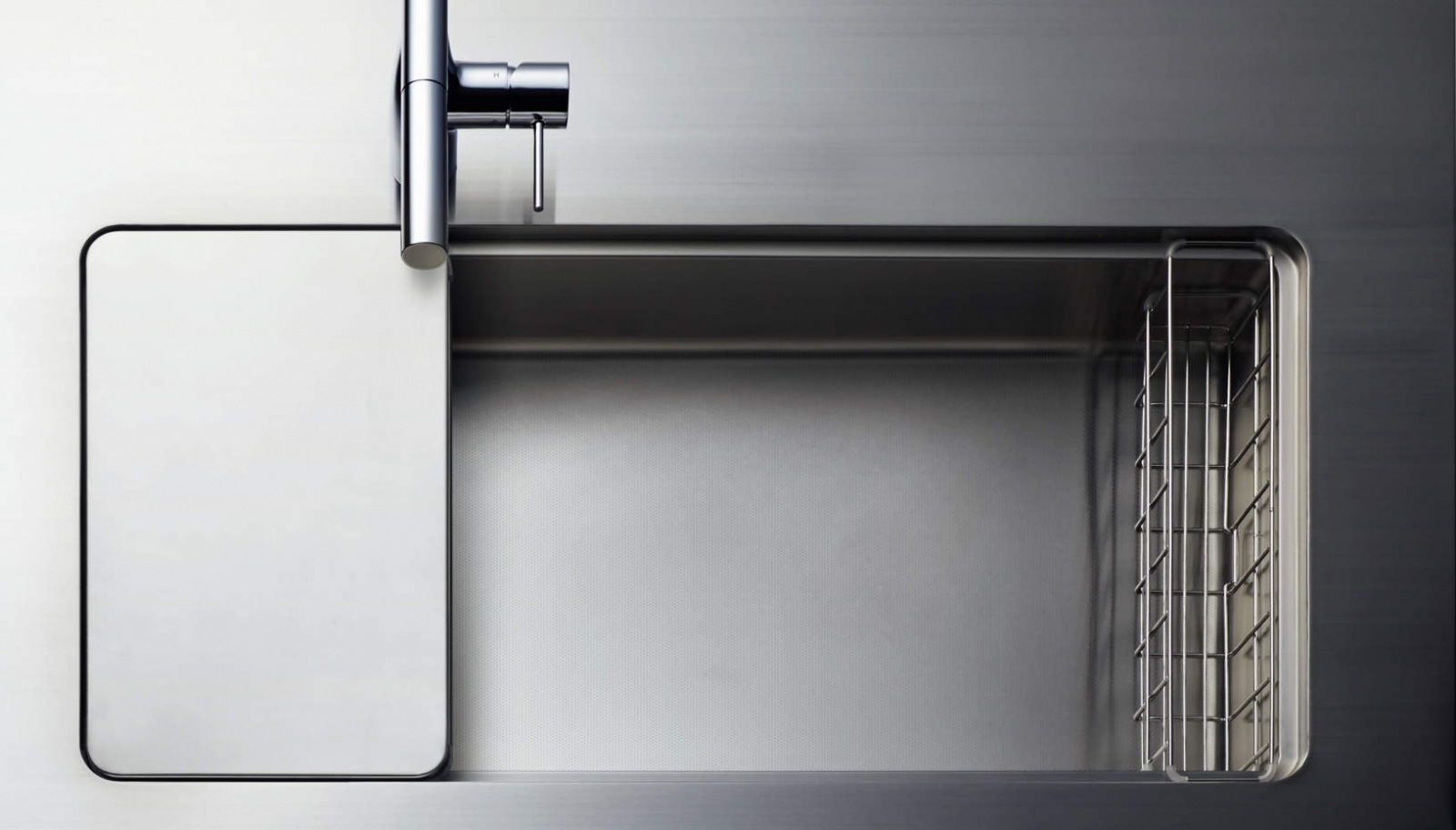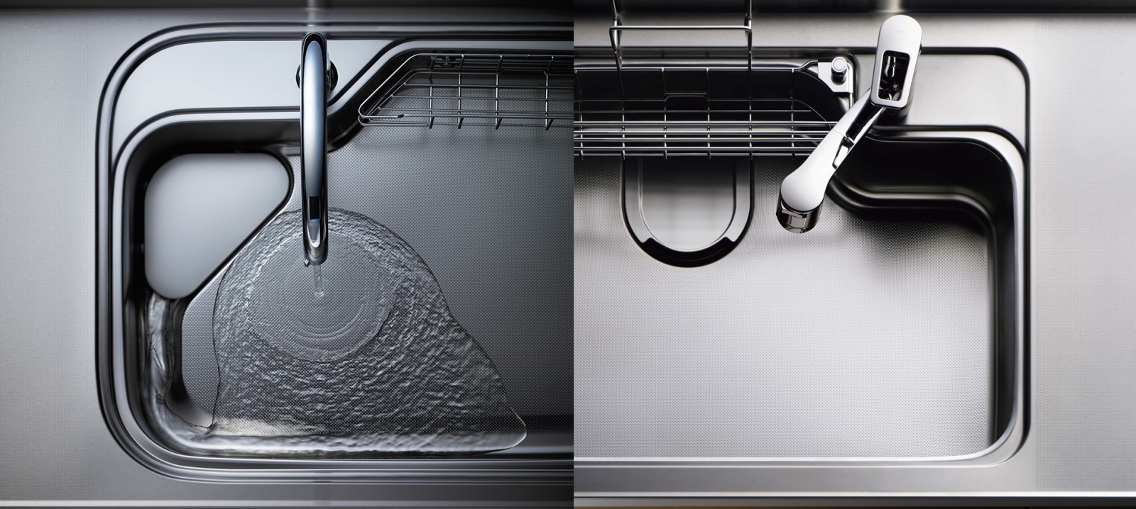 在經常使用的調理空間採用了特殊浮凸設計,減少餐具與檯面及水槽接觸的面積不易產生刮痕,即使有刮痕也不明顯。