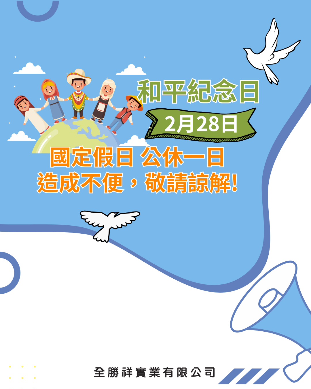 【2026和平紀念日 國定假日公告】