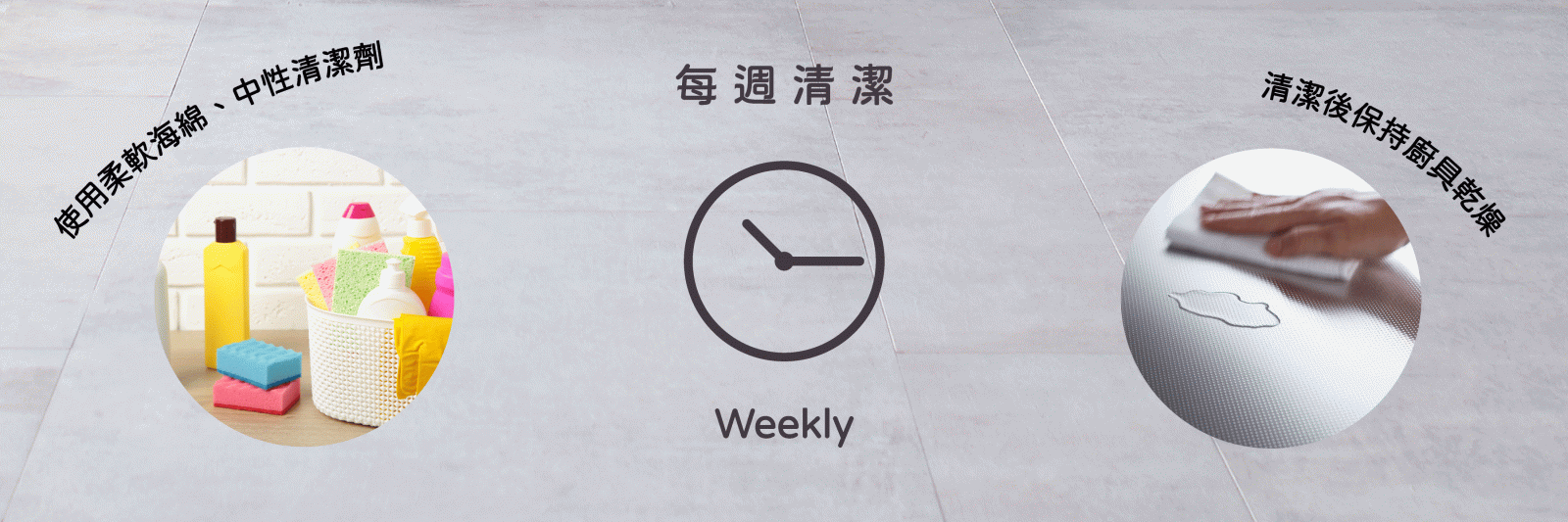 可以使用柔軟的海綿(不建議在門片上使用科技海綿)等不含粗糙顆粒的清潔用品,