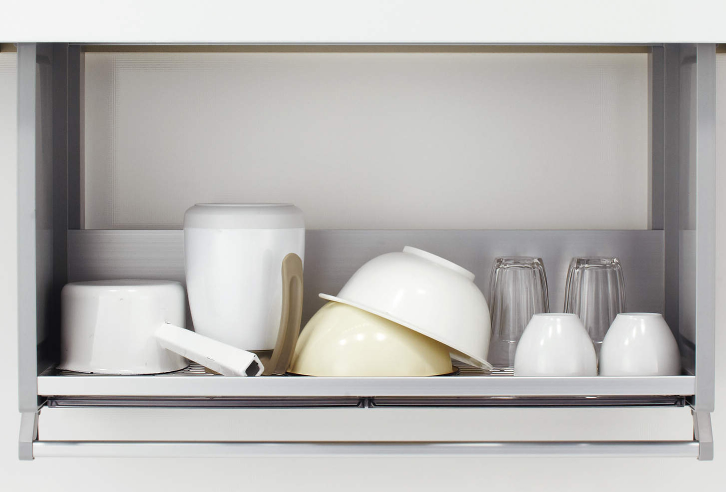 輕輕往下拉即可拿取上櫃收納的物品