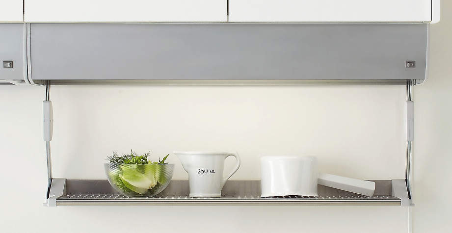 上層為小物收納空間,下層做瀝水自然風乾,或臨時配膳空間。