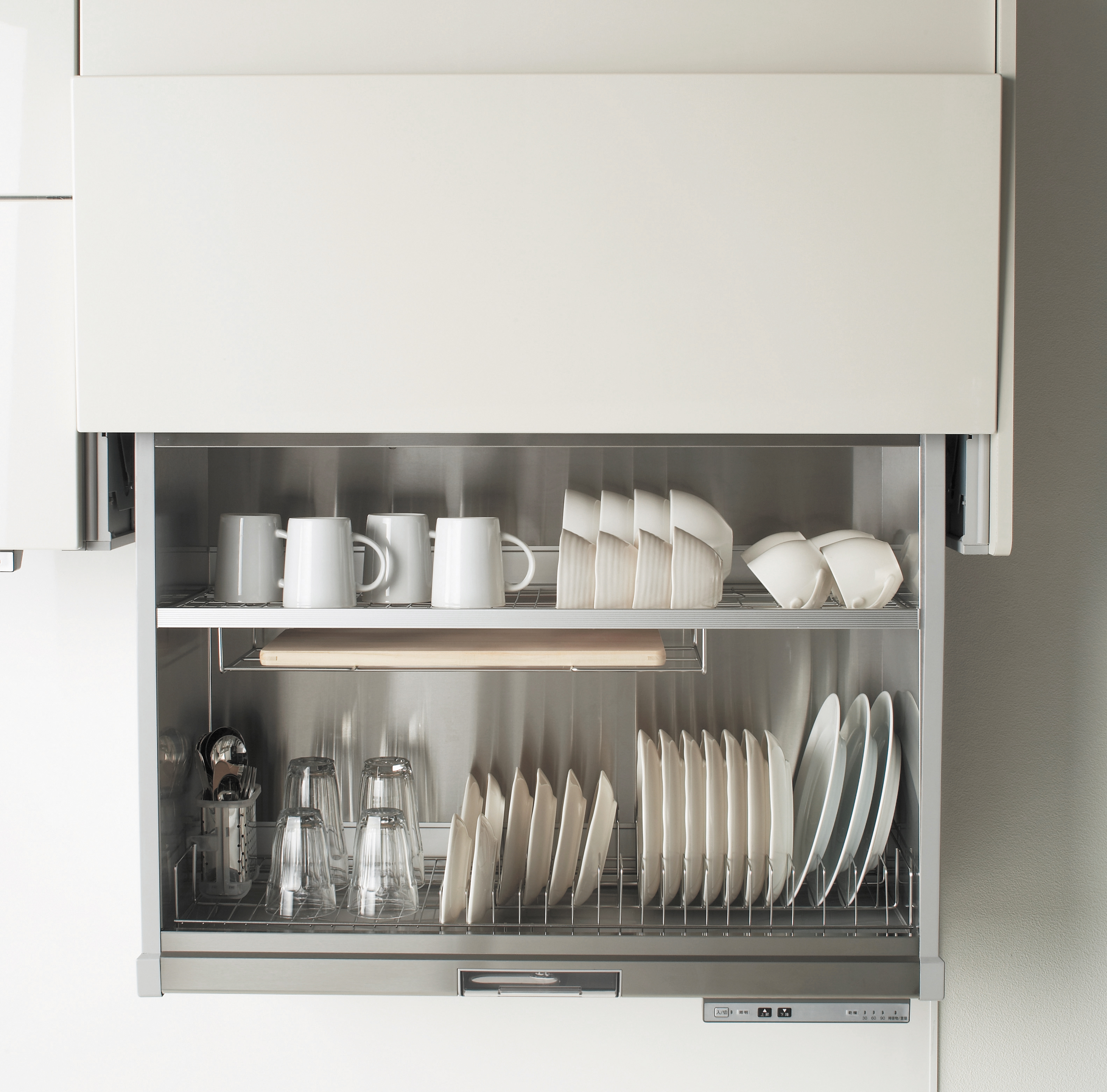 洗淨的餐具及砧板可直接收納,並被以溫風烘乾機能。
