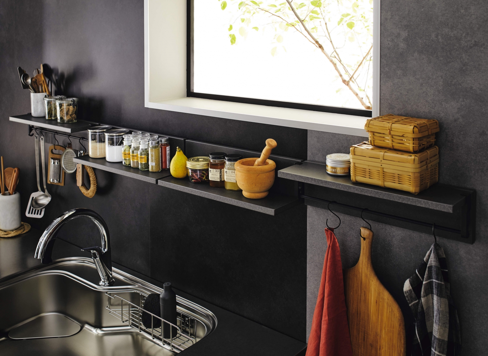 「磁吸壁板」磁吸功能是其魅力所在,能吸附磁性配件,提供靈活的收納空間,釋放檯面,常用物品隨手可得,大大提升烹飪效率。