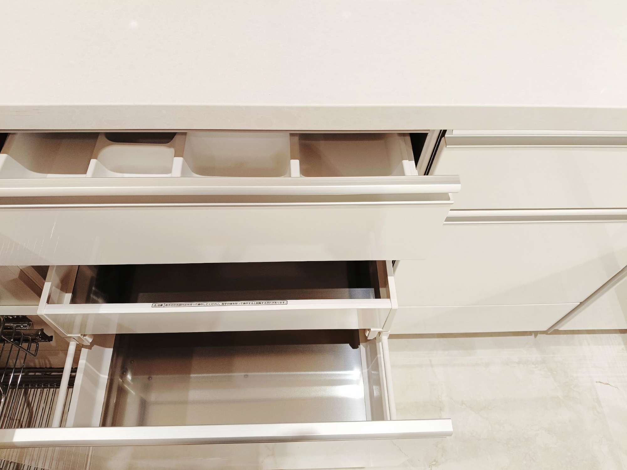 以現代極簡風格的ㄇ型廚具為主體,含中島,採用STEDIA Class03 CNA的門片,檯面選用愷薩金石4600;多樣化功能巧妙隱藏於簡潔的外觀之下,創造出一個既現代又極具效率的理想廚房。